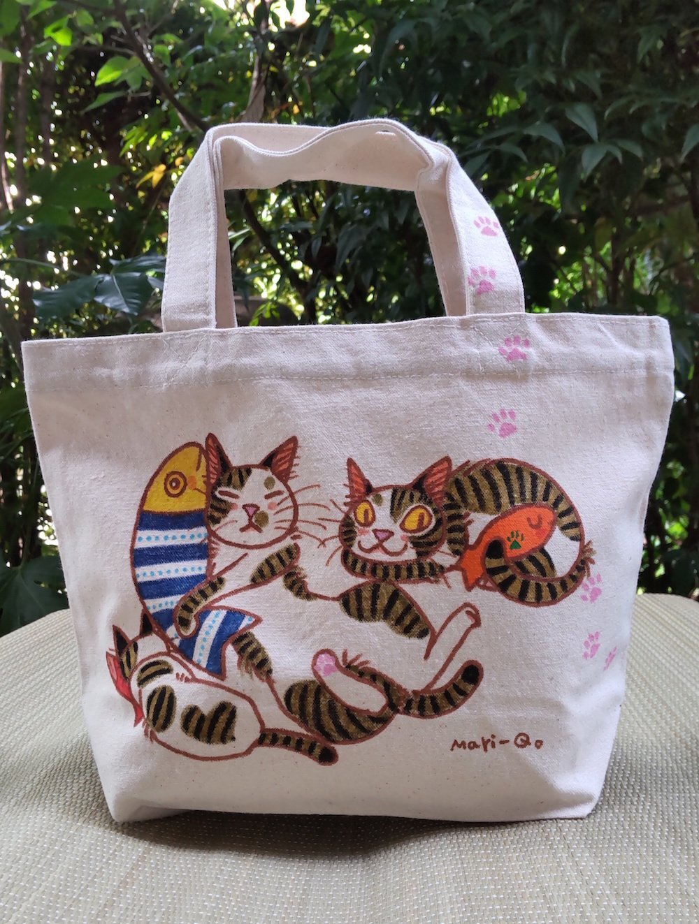 【Mari-Q。】手描きキャンバスランチトート3点入荷しました! 2024年12月08日 【MARI-Q。】 手描きキャンバスランチトートが3点入荷しました!! 手描きの一点もの! 両面で6~7匹のにゃんこが思い思いにくつろいでいる姿が描かれています。 綿100%のキャンバス生地でできてるにゃ! 販売ページはこちら キャンバスランチトート【白キジ】 裏面。お気に入りのクッションで和んでいます キャンバスランチトート【茶シロ】 裏面。お気に入りの魚クッションと一緒に寝ています。 キャンバスランチトート【グレーブチ】 裏面。お魚クッションでおひるね中。 販売ページはこちら «前 次» What's New