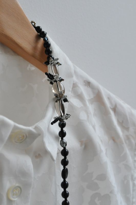 スワロフスキーと天然石のロングネックレス(黒) [33hit-27]