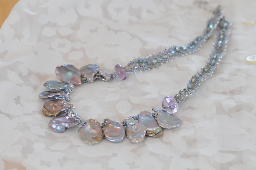 - ▶▶花びらの様な淡水パールを中心に使い華やかさを出しています