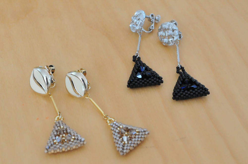 - ▶▶ビーズで三角形(トライアングル)を表現しました。スワロフスキーがキラキラと耳元で光ります