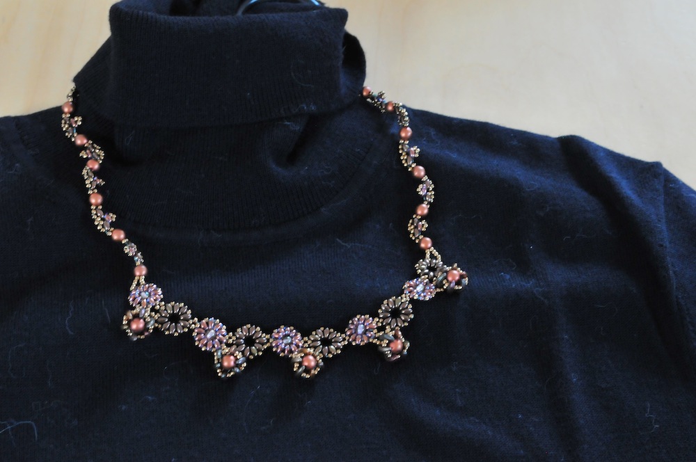 - ▶▶2つ穴のあるチェコビーズでつぼみを表現しました