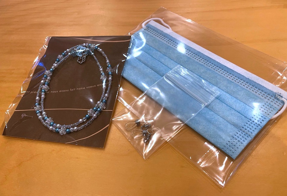 - ▶▶マスクコードに、眼鏡用のゴムストラップと不織布のマスクをお付けします