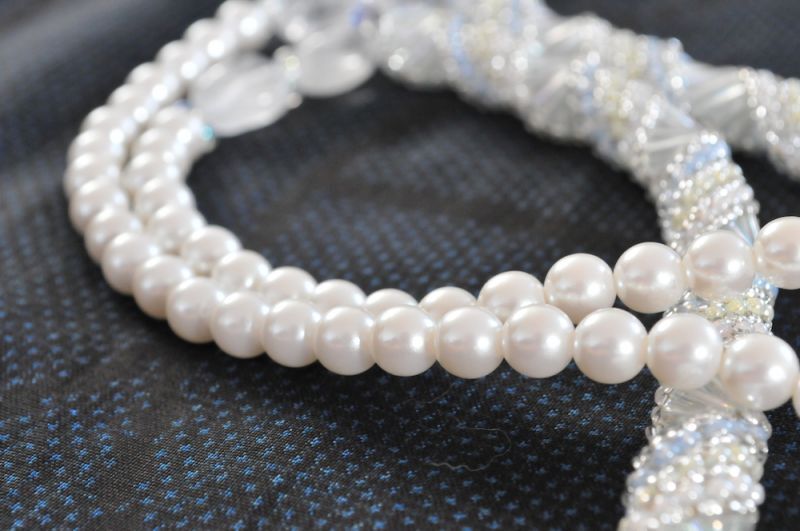 - 竹ビーズをくるくるとチューブ状に編んでいます。