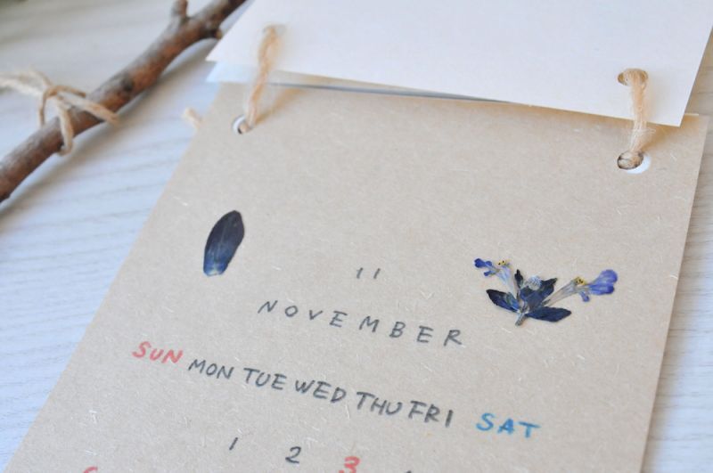 - おうちのPansy*Gardenの草花を押し花にして付けた手作りカレンダー