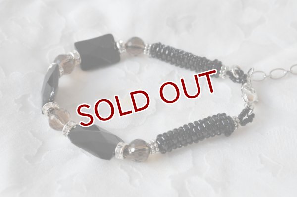 - 天然石オニキス、スモーキークォーツ、ロンデル、スペーサー、シードビーズ