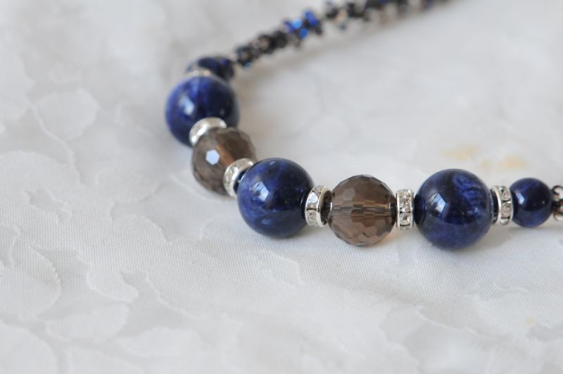 - 天然石ソーダライト、スモーキークォーツ、ロンデル、ピーナッツビーズ、シードビーズ