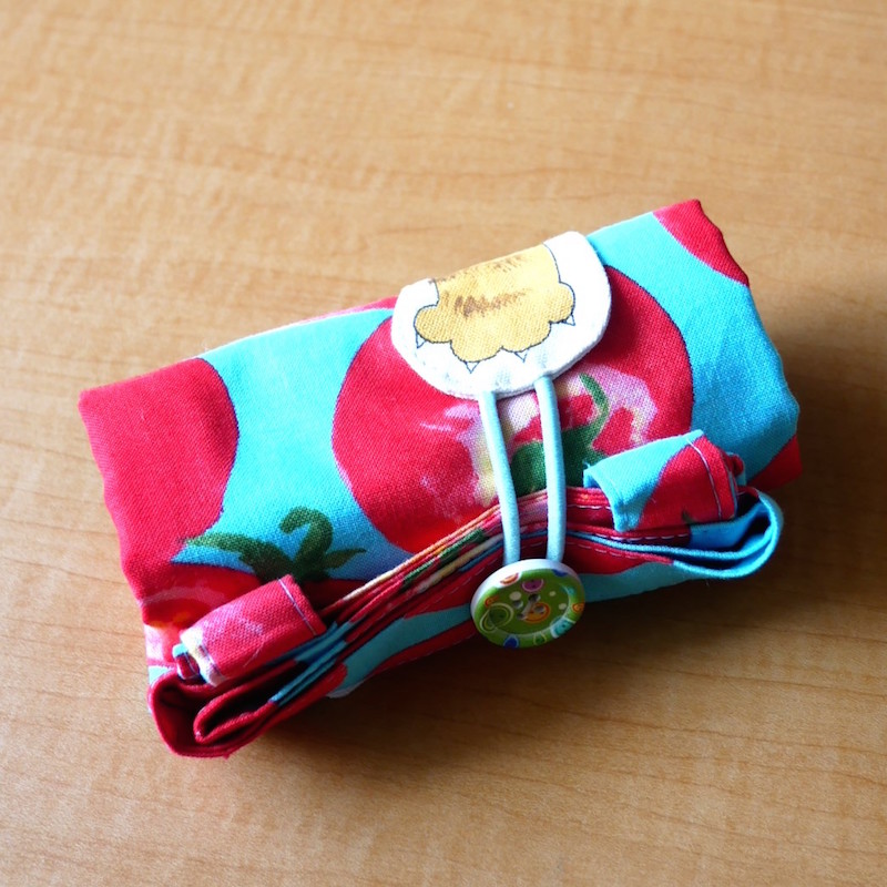 - くるっと猫を巻いて留めるエコバッグ