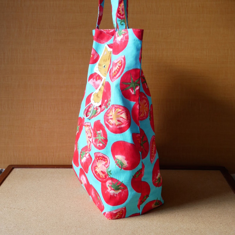 猫で留めちゃう エコバッグ【Mサイズ トマト×茶トラ】