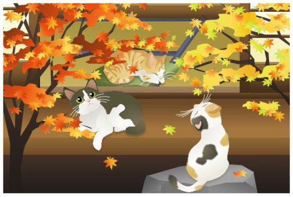 - 縁側で色付いたモミジを眺めるにゃんこ達です