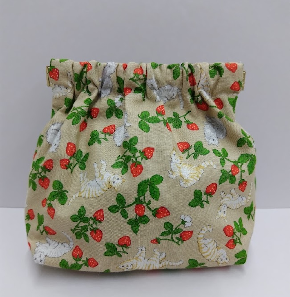 yamari:ばね口ポーチ【ねことイチゴ】 一部寄付 [1y-53]