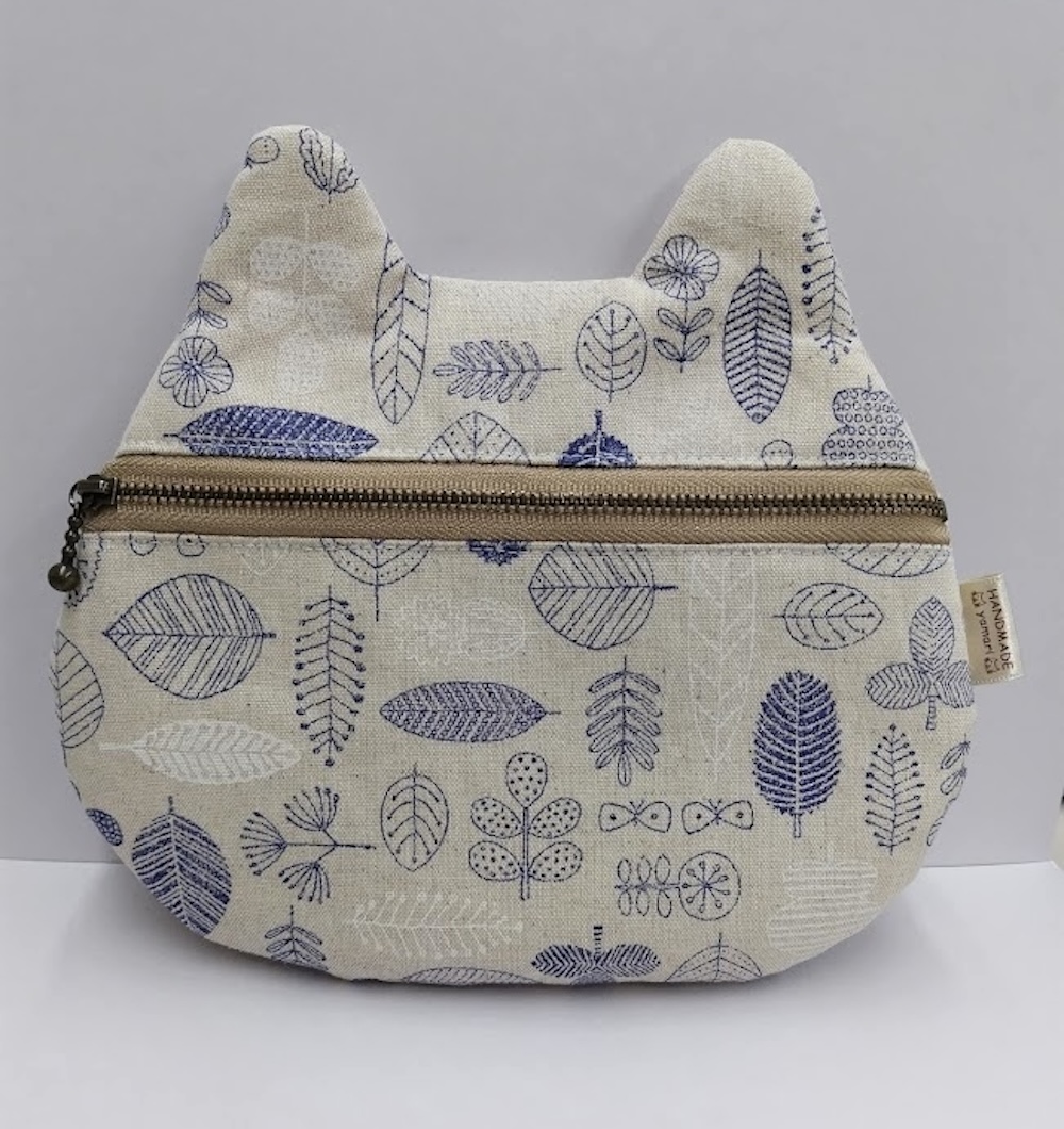 yamari:にゃんこフェイスポーチ 【北欧柄ブルー】 一部寄付 [1y-56]