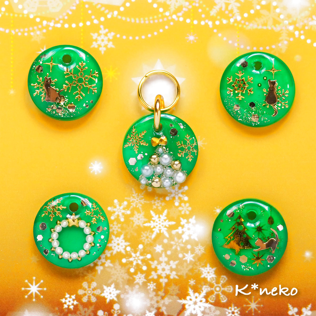 ★一点物★猫用迷子札名入れオーダー【クリスマス緑】一部寄付 [K*neko54]