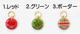 - クリスマスカラーの迷子札です。小さな飾りとラメがポイントです♪