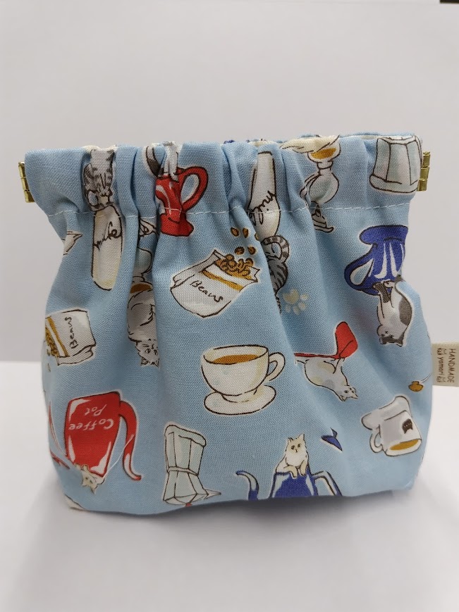 yamari:ばね口ポーチ【ティータイムねこ BL】 一部寄付 [1y-61]