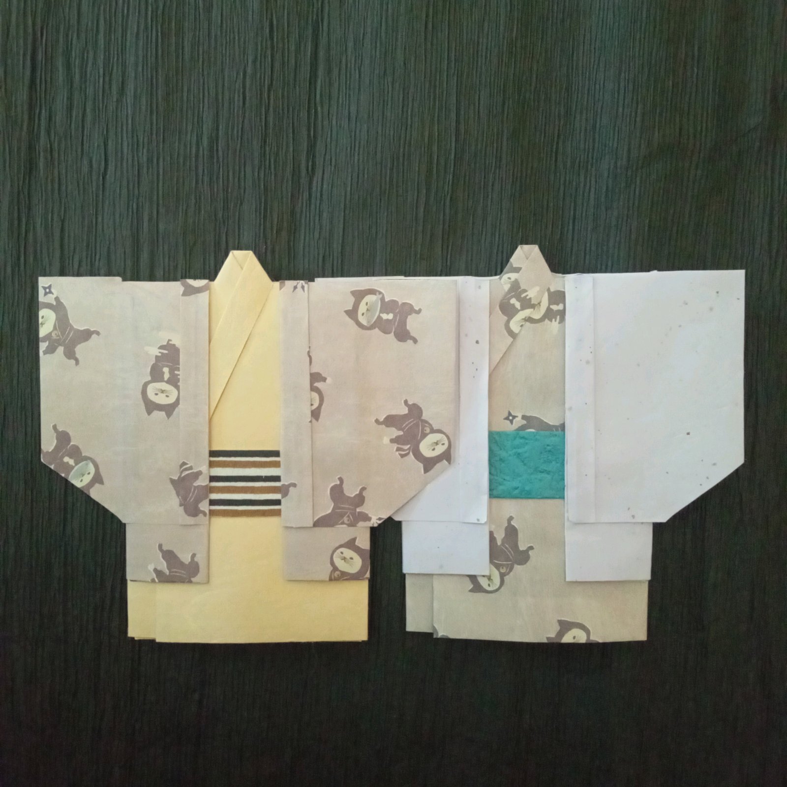 着物の形のポチ袋(半纏2枚組)【忍者猫 (灰色)】