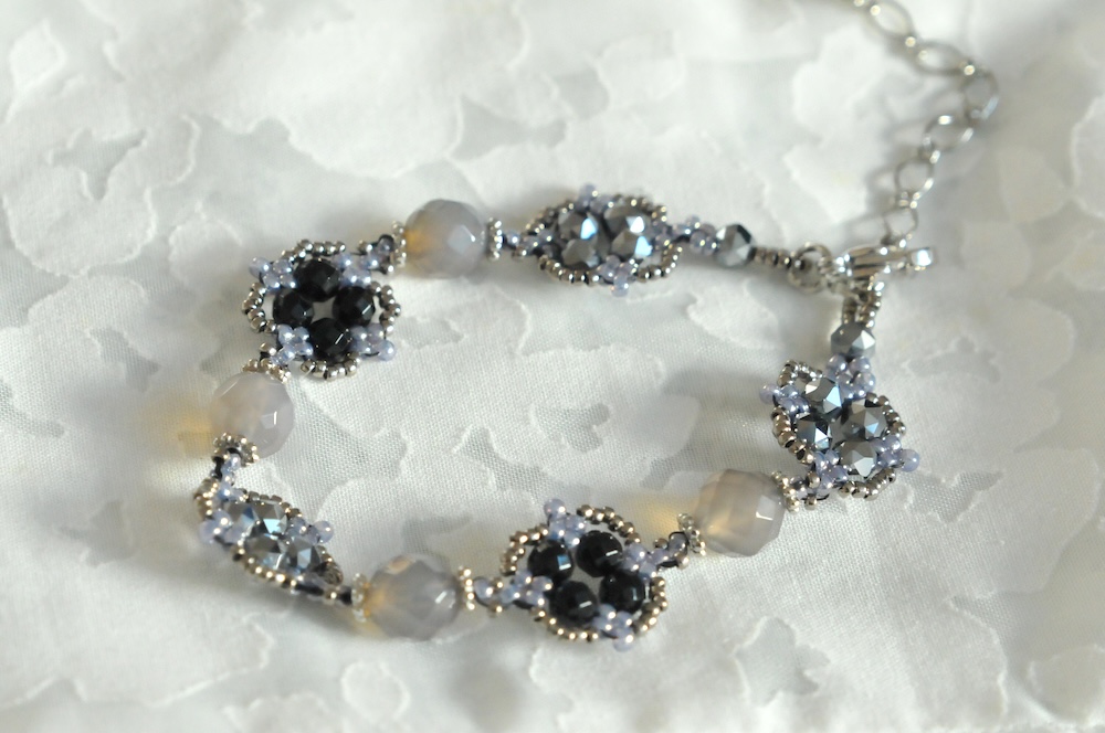 - テラヘルツ、天然石オニキス、グレーアゲート、ガラスビーズ、シードビーズ