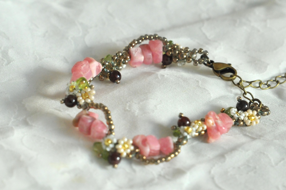 - 天然石インカローズ、ガーネット、ペリドット、シードビーズ