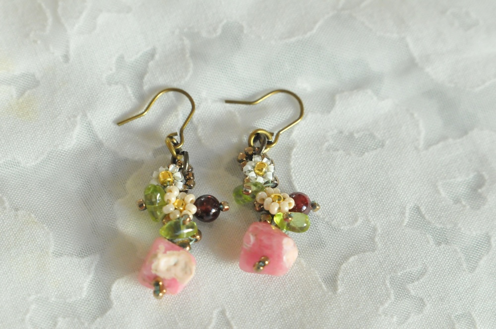 - 天然石インカローズ、ガーネット、ペリドット、シードビーズ