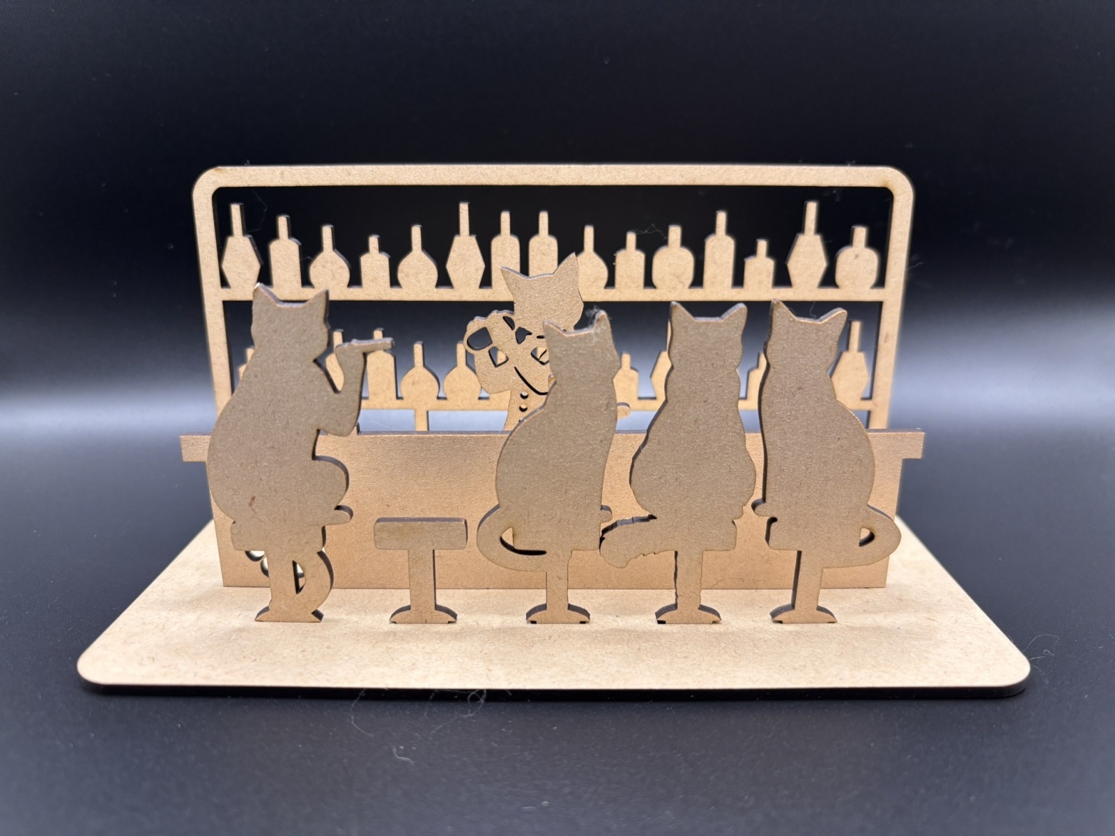 - お客も、バーテンダーもすべてねこ!バーカウンターの上や側面など細部にもこだわっています。