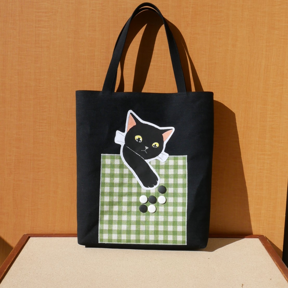 - 猫は、一匹一匹生成りの帆布生地に手描きしています