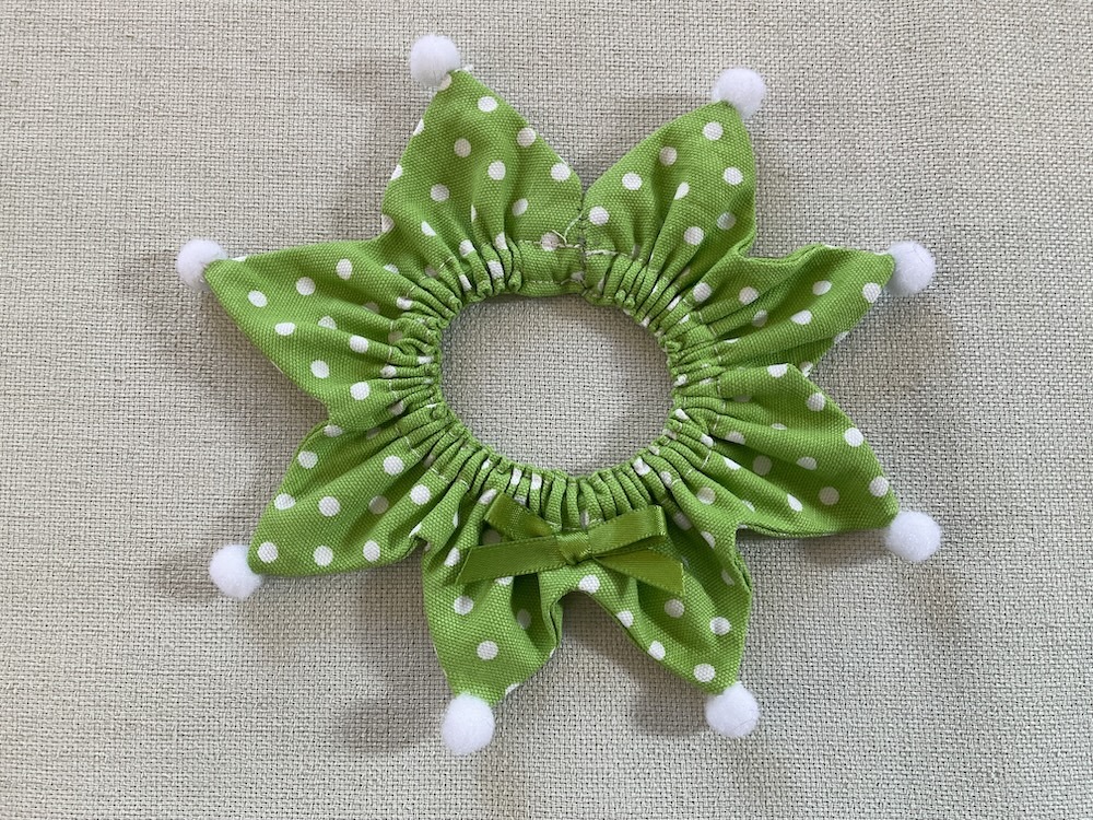 - ボンボンとリボンが付いたシュシュ